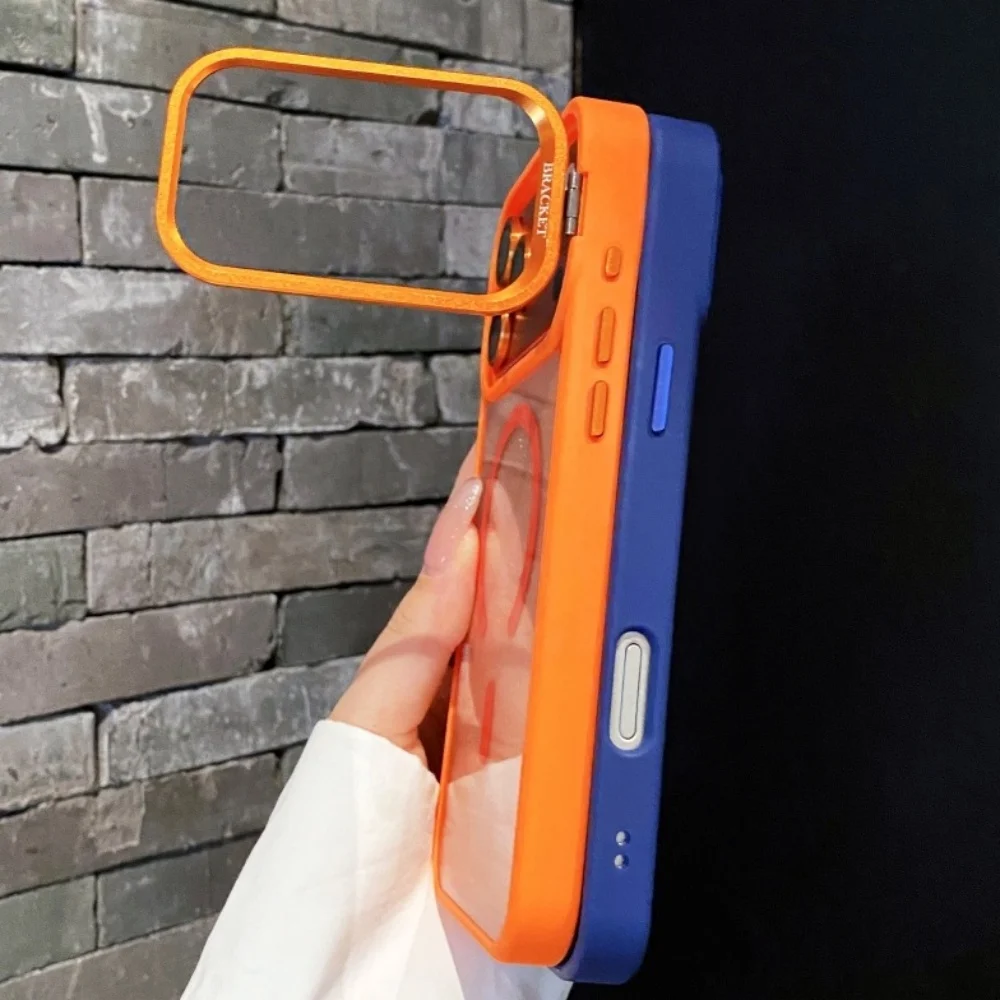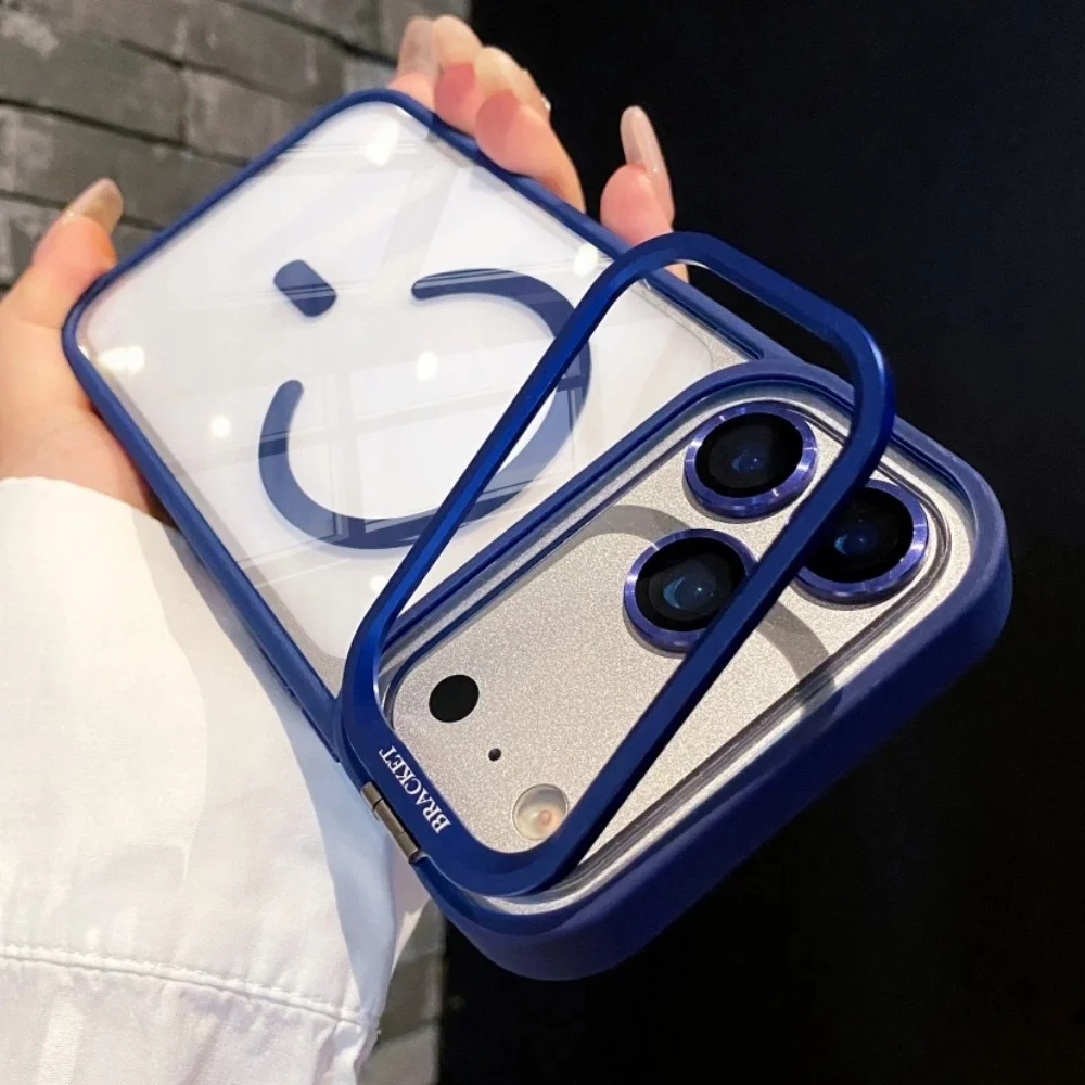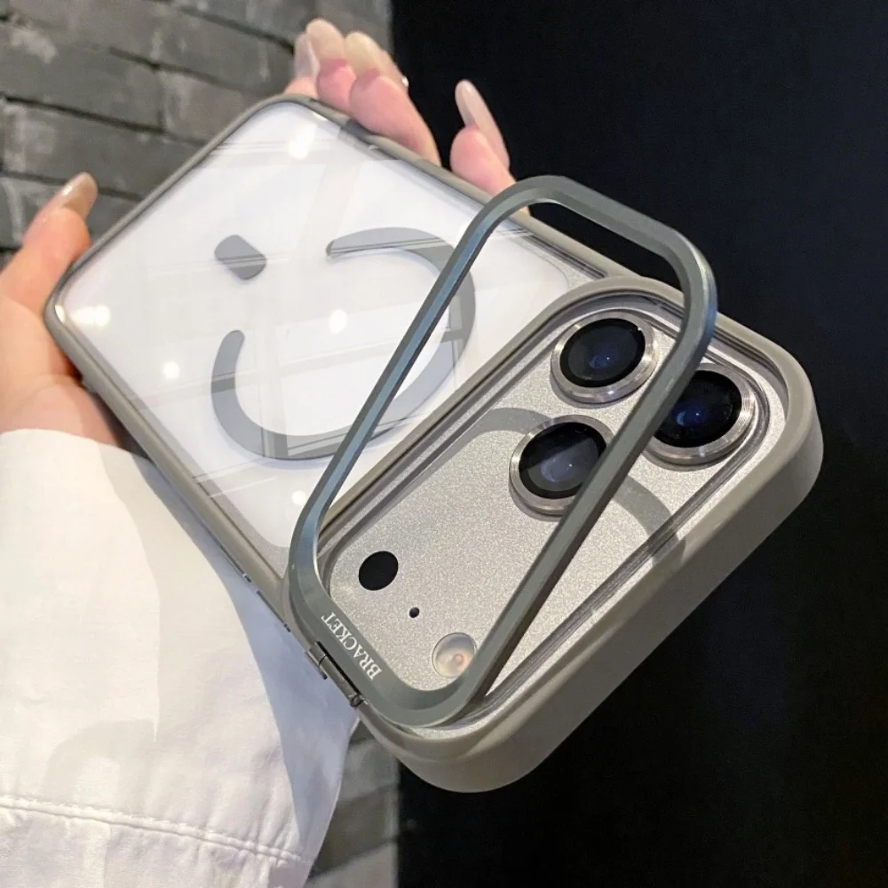 Metal Lens Stand Magnetic For Magsafe Case For iPhone 17 16 15 14 13 12 11Pro Max Plus Air Shockproof Wireless Charge Clear Case